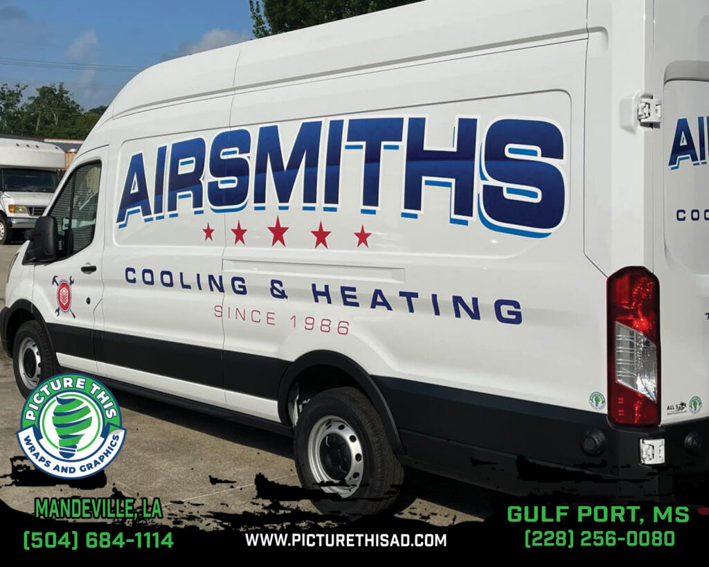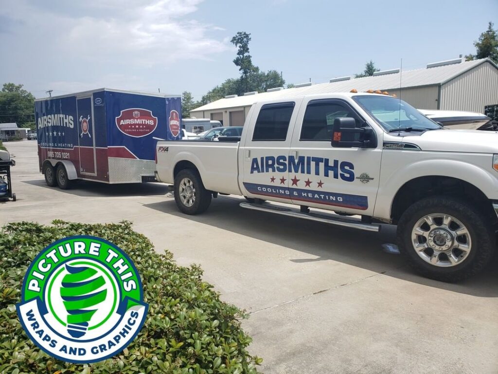 HVAC Wraps Transform your HVAC business with vibrant truck wraps that attract attention and increase brand recognition on the road. Custom HVAC vehicle wraps designed for Daikin HVAC contractors, enhancing branding and visibility on service vehicles. Professionally designed vehicle wrap for AIRSMITHS, showcasing branding and contact details for effective advertising.